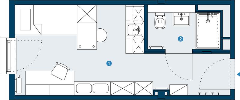 Praktisch geschnittenes, voll möbliertes Einraumapartment mit …