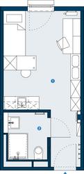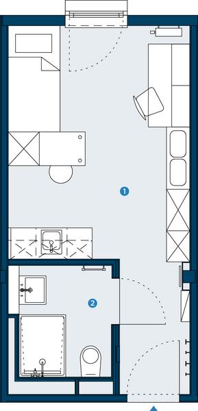 Praktisch geschnittenes, voll möbliertes Einraumapartment mit …