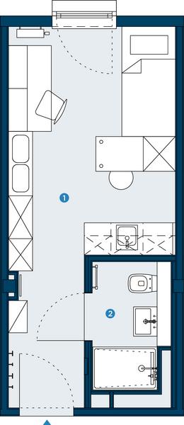 Praktisch geschnittenes, voll möbliertes Einraumapartment mit …