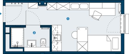 Praktisch geschnittenes, voll möbliertes Einraumapartment mit …
