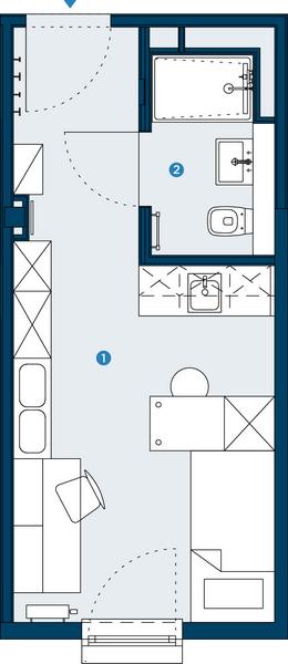 Praktisch geschnittenes, voll möbliertes Einraumapartment mit …