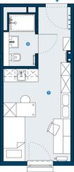 Praktisch geschnittenes, voll möbliertes Einraumapartment mit …