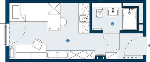 Praktisch geschnittenes, voll möbliertes Einraumapartment mit …