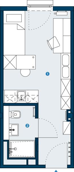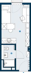 Praktisch geschnittenes, voll möbliertes Einraumapartment mit …