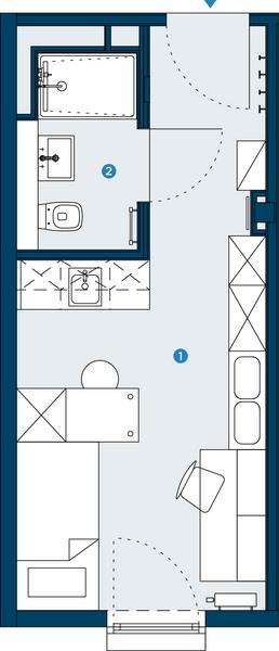 Praktisch geschnittenes, voll möbliertes Einraumapartment mit …