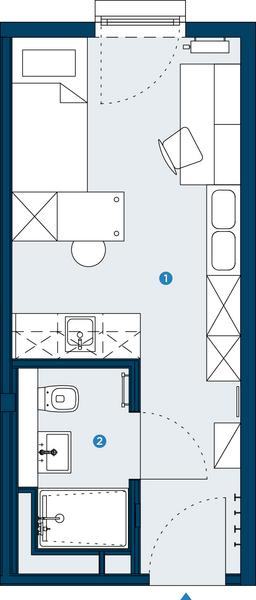 Praktisch geschnittenes, voll möbliertes Einraumapartment mit …