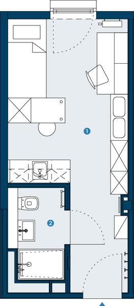 Praktisch geschnittenes, voll möbliertes Einraumapartment mit …