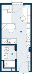 Praktisch geschnittenes, voll möbliertes Einraumapartment mit …
