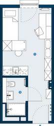 Praktisch geschnittenes, voll möbliertes Einraumapartment mit …