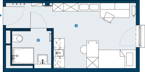 Praktisch geschnittenes, voll möbliertes Einraumapartment mit …