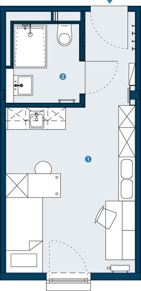 Praktisch geschnittenes, voll möbliertes Einraumapartment mit …