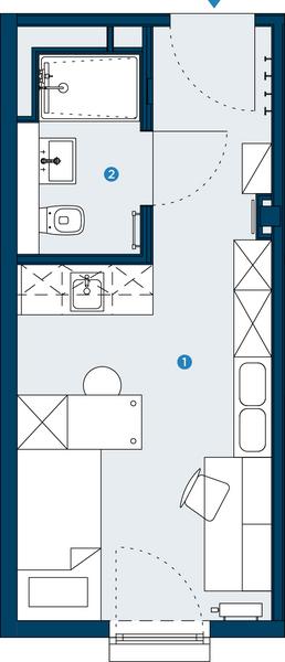 Praktisch geschnittenes, voll möbliertes Einraumapartment mit …