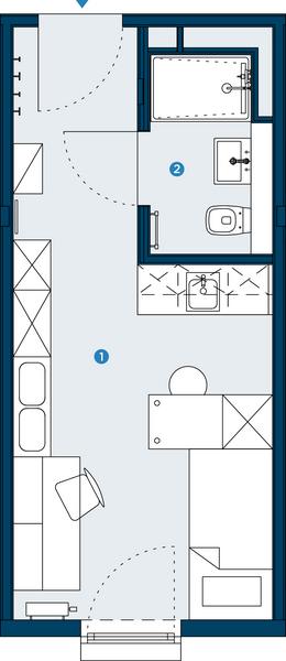 Praktisch geschnittenes, voll möbliertes Einraumapartment mit …