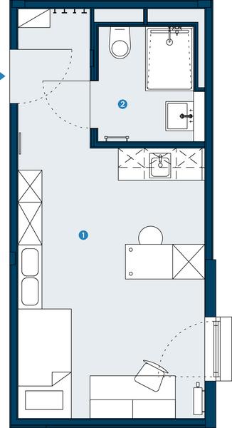 Praktisch geschnittenes, voll möbliertes Einraumapartment mit …