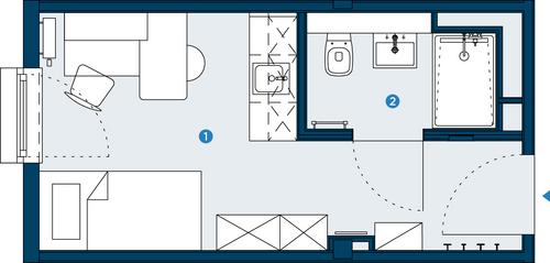 Praktisch geschnittenes, voll möbliertes Einraumapartment mit …