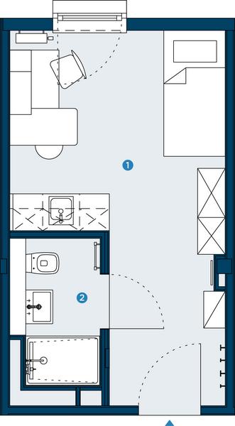 Praktisch geschnittenes, voll möbliertes Einraumapartment mit …