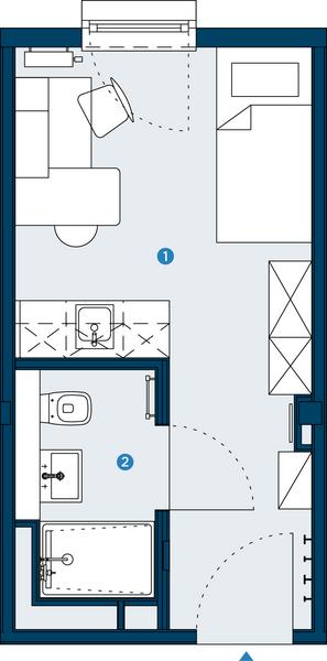Praktisch geschnittenes, voll möbliertes Einraumapartment mit …