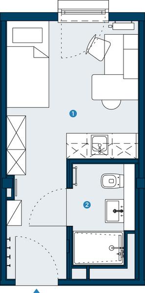 Praktisch geschnittenes, voll möbliertes Einraumapartment mit …