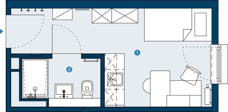 Praktisch geschnittenes, voll möbliertes Einraumapartment mit …