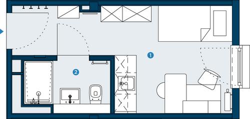 Praktisch geschnittenes, voll möbliertes Einraumapartment mit …