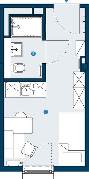 Praktisch geschnittenes, voll möbliertes Einraumapartment mit …